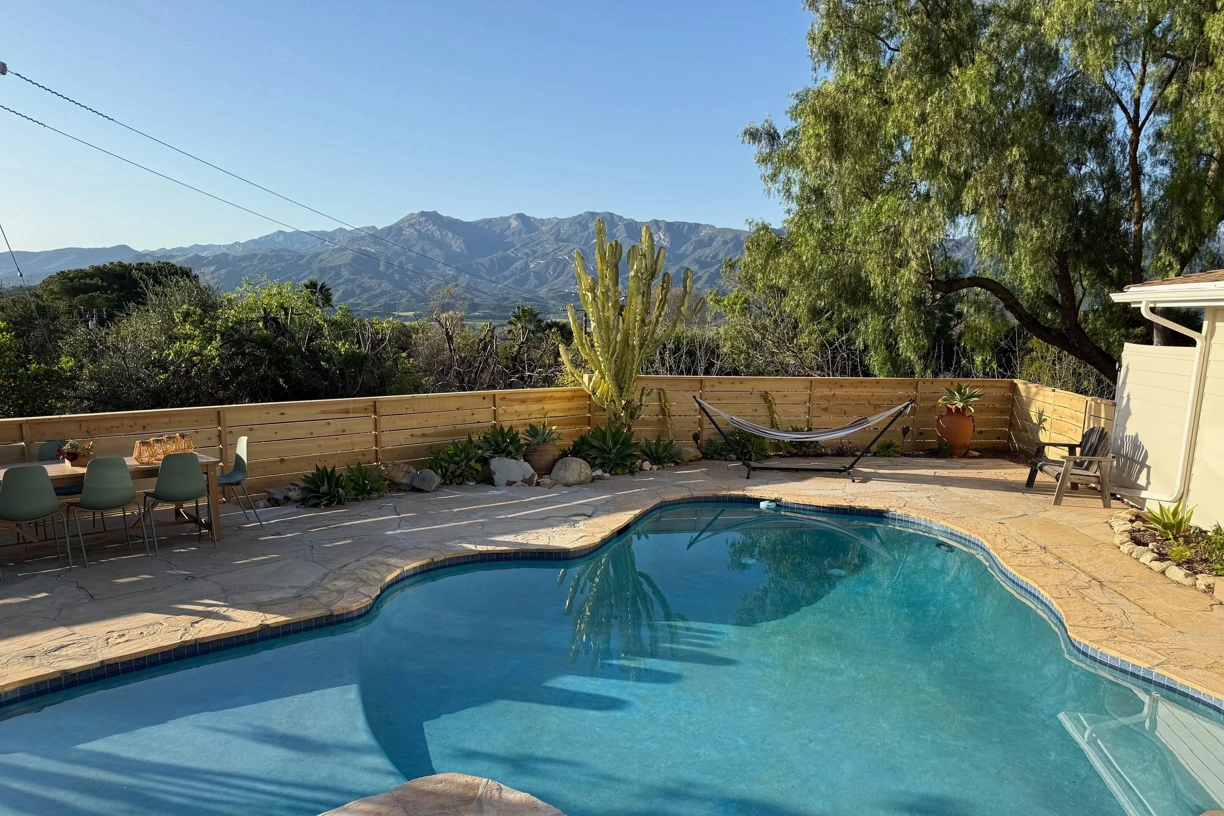 Escape to this enchanting Ojai hideaway, a secluded retreat nestled on nearly an acre of lush greenery, just minutes from downtown Ojai’s vineyards, shops, and hiking trails. This spacious 2,400 SF home has been completely renovated and offers a relaxing getaway for your family or to share with friends. Lounge by the sparkling pool, indulge in the hot tub, or unwind by the cozy fireplace. This serene getaway is perfect for long-term stays and offers the ideal blend of comfort, adventure, and Ojai magic.